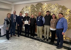 From L-R Annette Etchberger/HR Director, Joe Shadid/CEO, Alex Ridlovsky/Director of Housing, George Naddour (Employee of the Season – Winter 2025), Father Paul Rothermel/Chaplian, Nathan Niles/CFO, Andrew Gallo/HR Manager, Allison Guzley/Executive Assistant and Ed Felix/AIT.