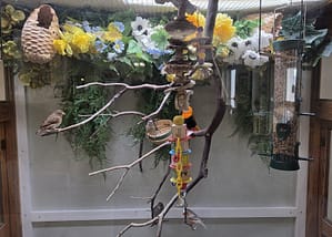 The soft chirping in our lobby creates an immediate sense of warmth. Residents and visitors alike pause to watch them. Their movement and song bring calm, connection, and simple joy — especially for those with memory challenges.